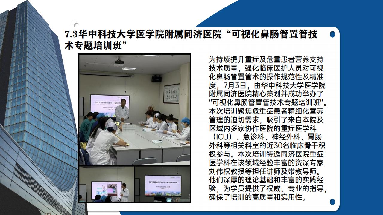 The advancement of medical care is fundamentally driven by two parallel forces: technological innovation that provides new tools, and clinical education that ensures these tools are used skillfully and safely. A recent specialized training program perfectly embodied this synergy, highlighting the growing clinical adoption of advanced medical techniques. On July 3rd, the prestigious Tongji Hospital, affiliated with Huazhong University of Science and Technology, successfully organized a "Visualized Nasoenteral Tube Intubation Technology Special Training Course." This initiative was meticulously designed to address a critical need in modern healthcare: enhancing the quality of nutritional support for severely ill patients by improving the operational standardization and precision of a key procedure among clinical staff.